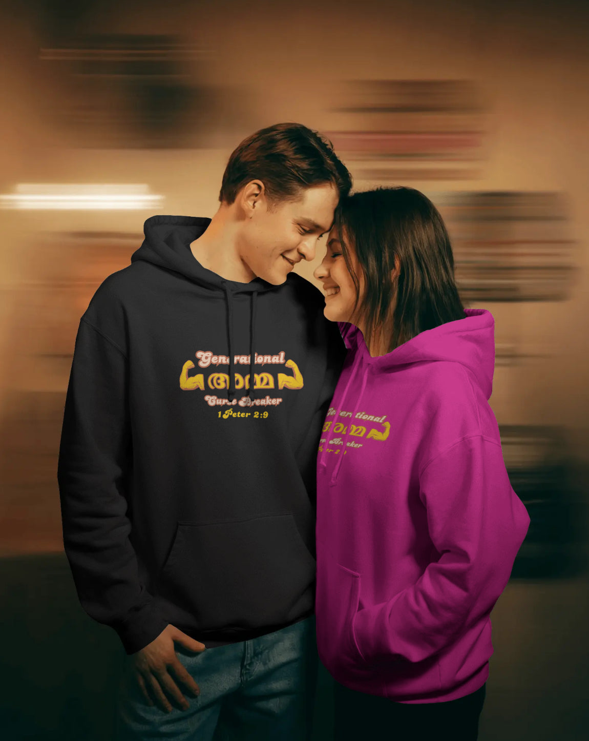 This hoodie is inspired by 1 Peter 2:9, a reminder that you are chosen, set apart, and called to break chain's. These design’s are for those who stand firm on ending generational cycles and mindsets by boldly declare a new legacy, the Generational Curse Breaker hoodies are more than apparel — it’s a statement.