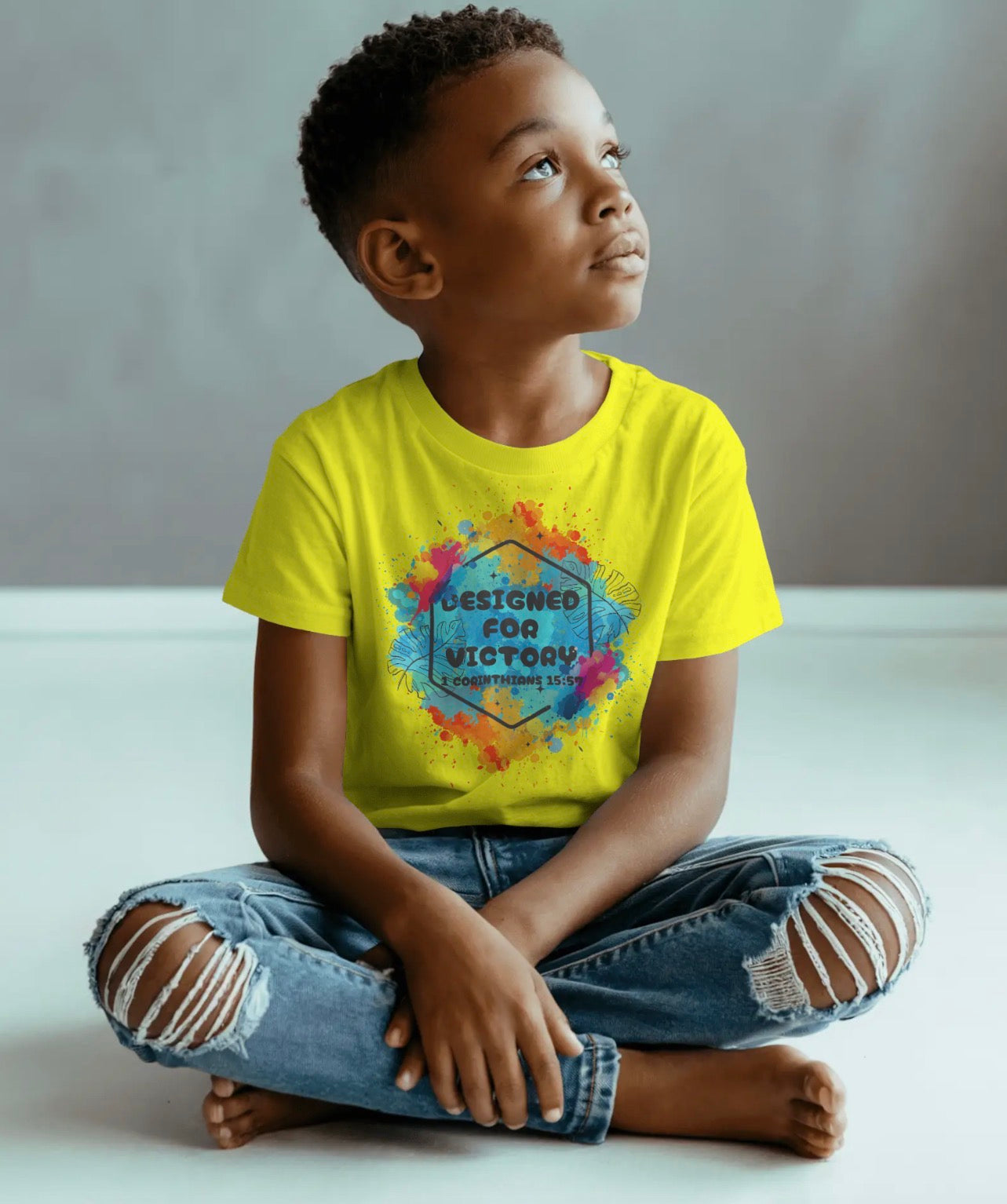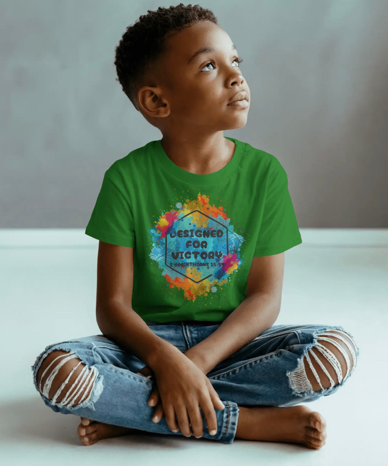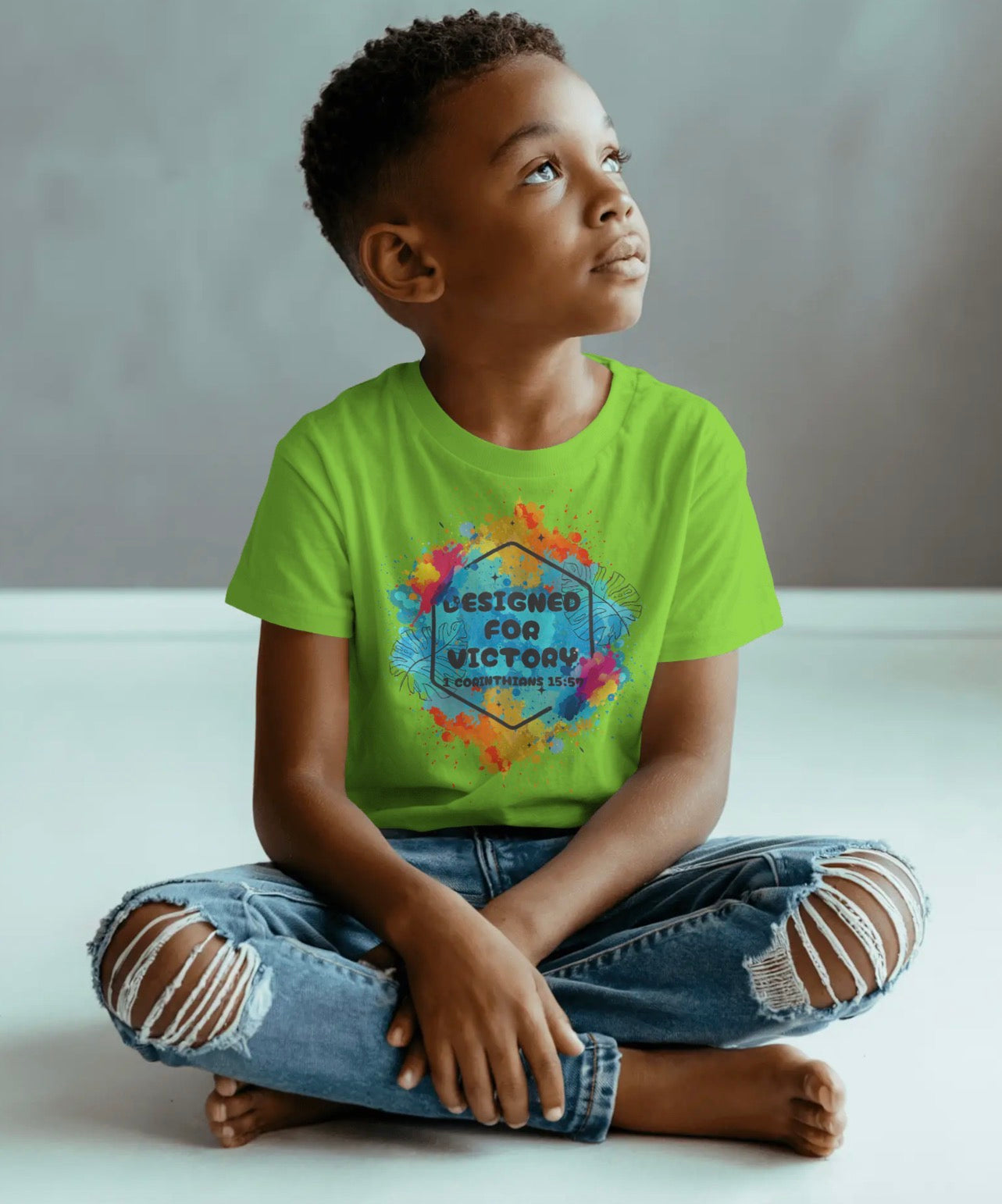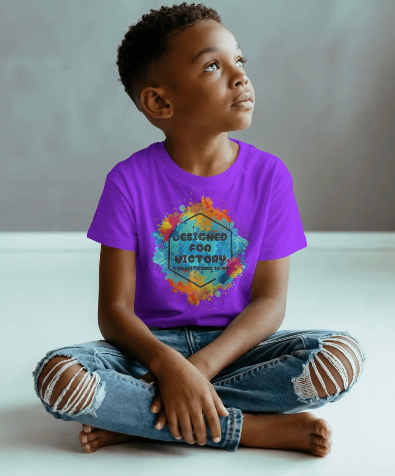 The Designed for Victory Kids Tee is a joyful reminder that every child is created with purpose, strength, and confidence through Christ. Inspired by 1 Corinthians 15:57, this shirt encourages kids to walk boldly, knowing that victory comes from God.