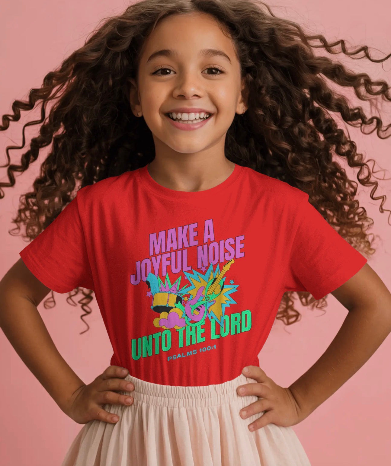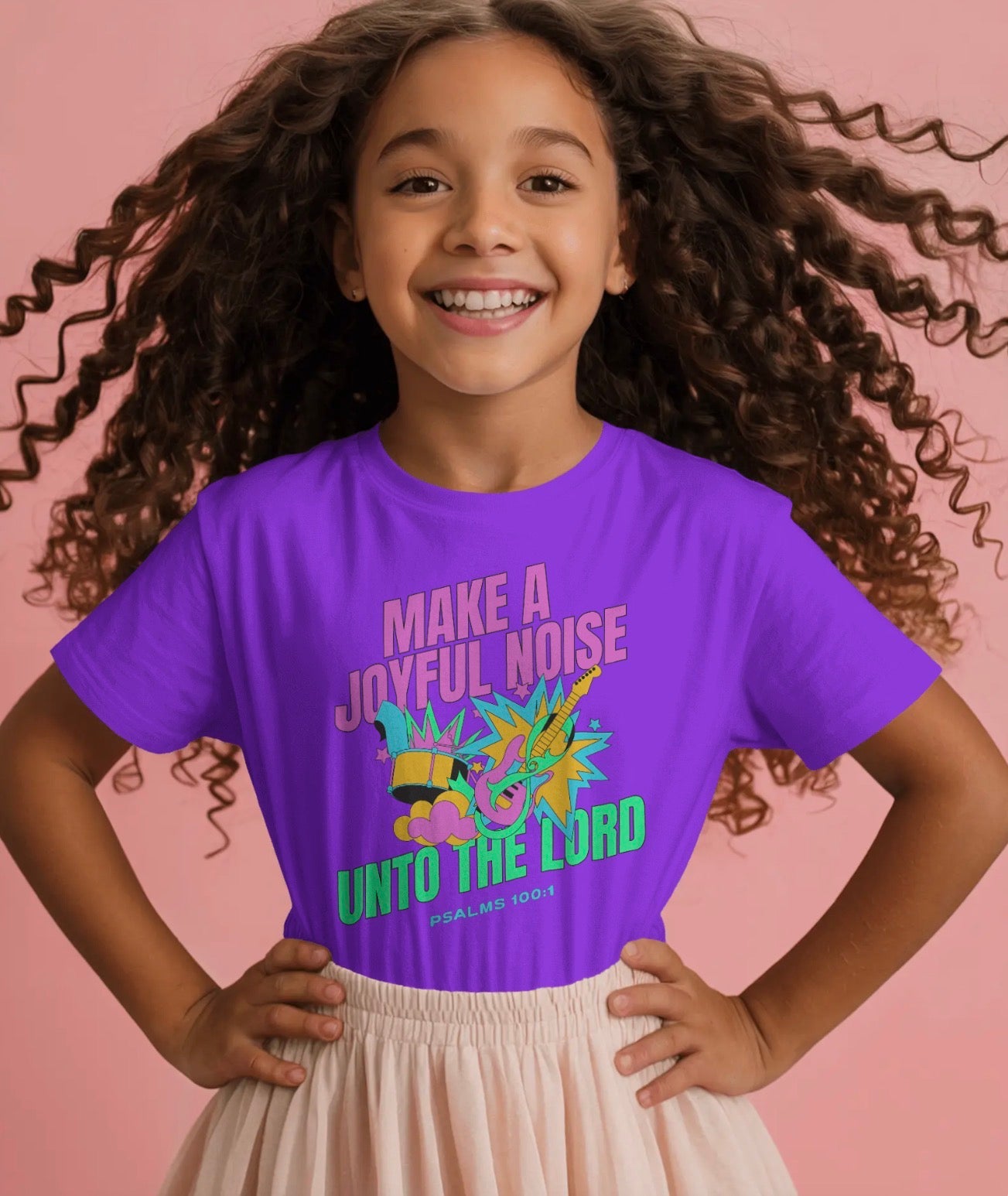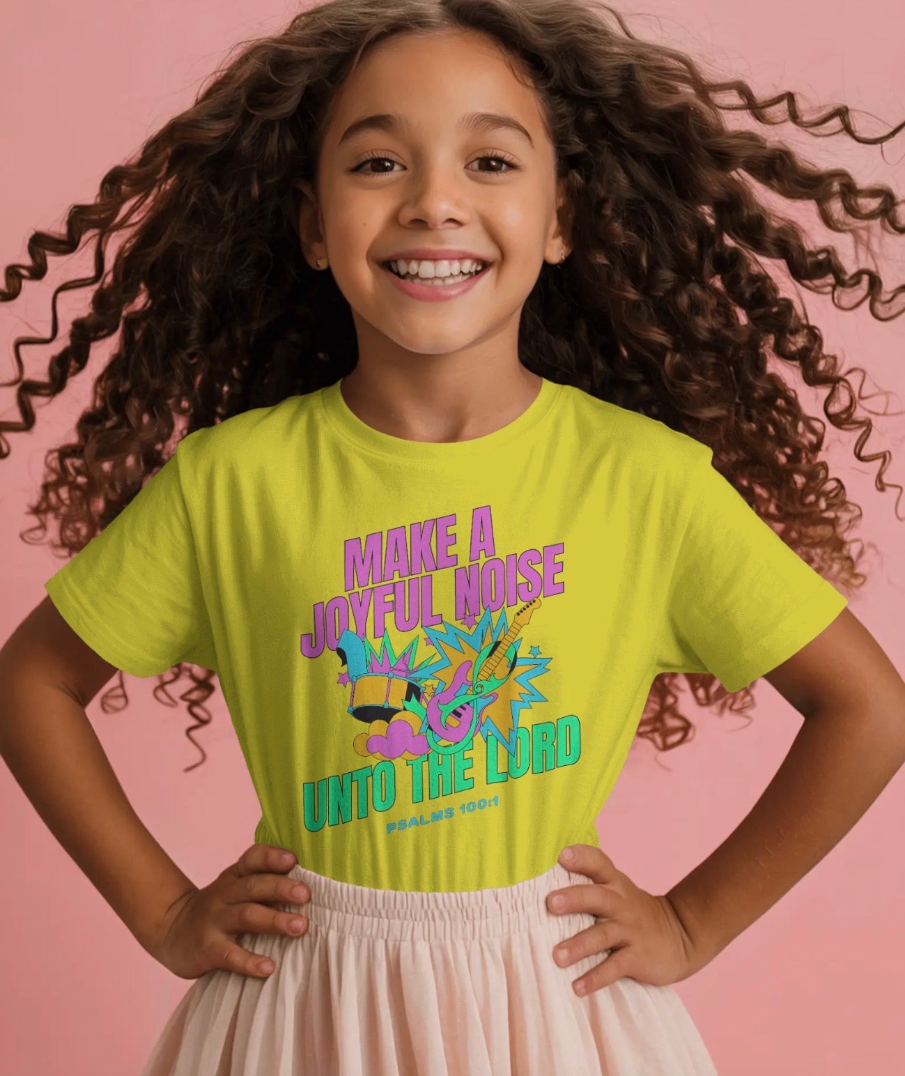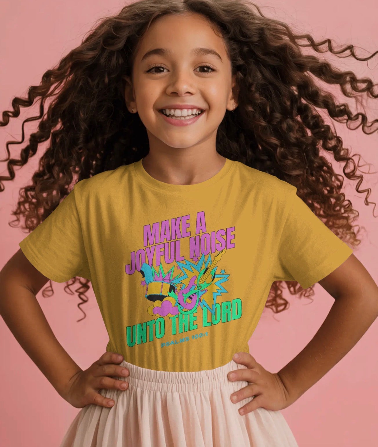 The Make a Joyful Noise Kids Tee is a bright, playful celebration of worship, creativity, and joyful expression. Inspired by Psalm 100:1, this shirt reminds kids that praising the Lord doesn’t have to be quiet—it can be full of music, movement, and color.