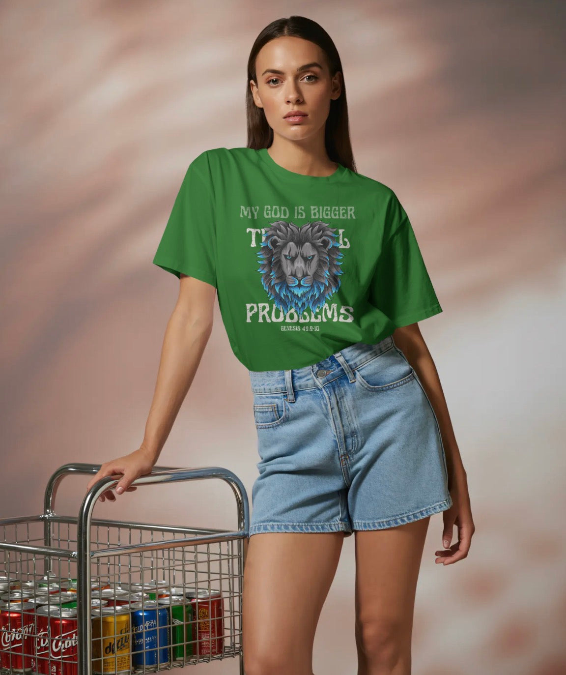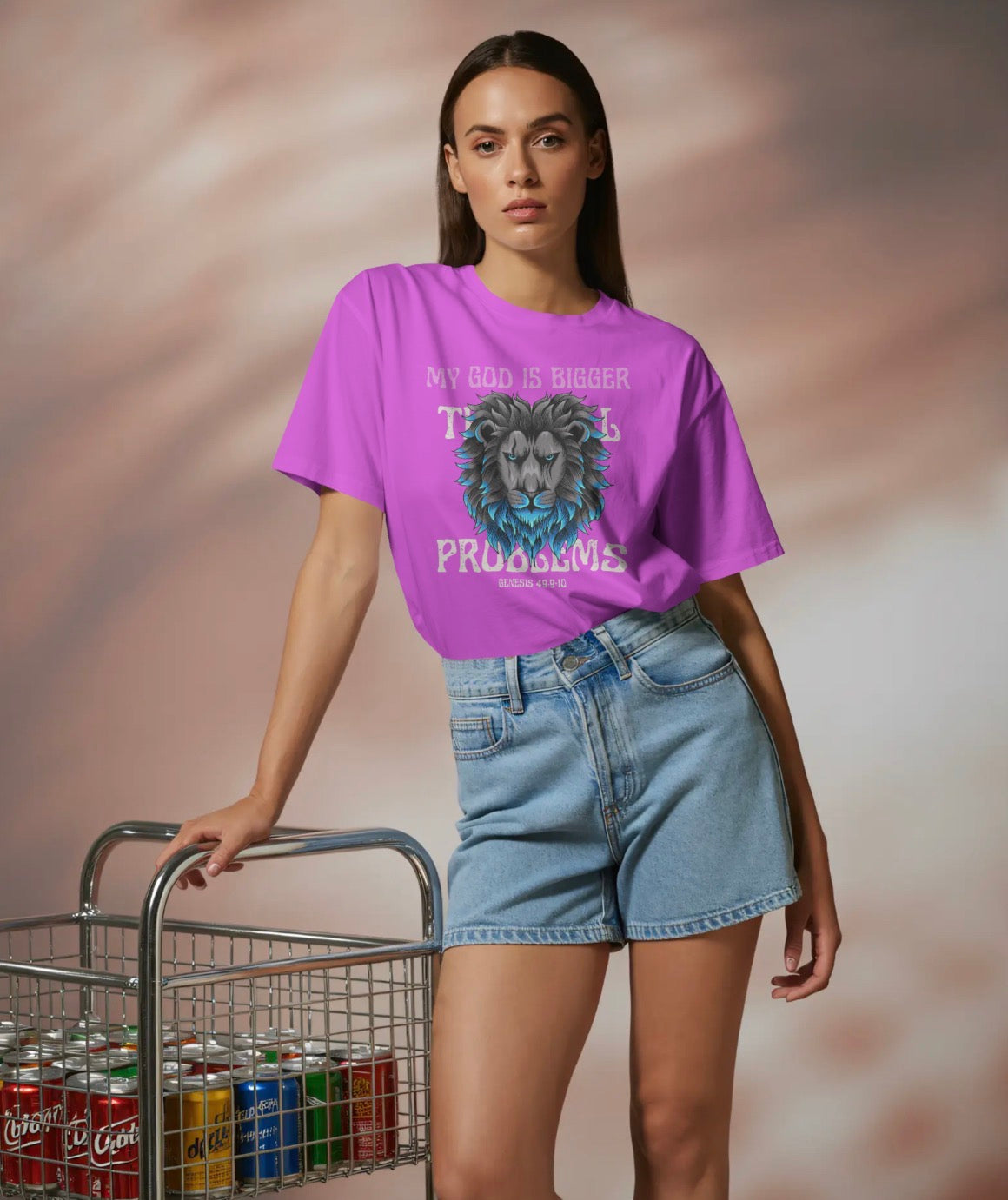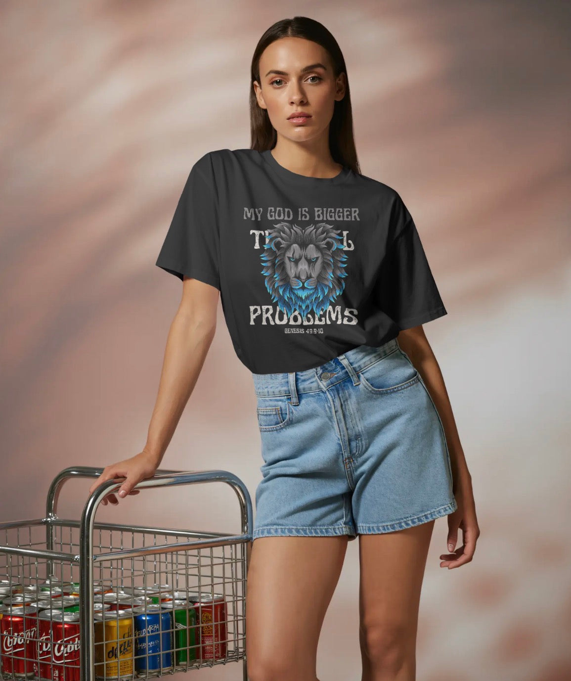 Walk in confidence knowing that no challenge is greater than the God you serve. This powerful tee features a striking lion graphic symbolizing strength, authority, and unwavering faith, paired with the declaration “My God Is Bigger Than My Problems.”