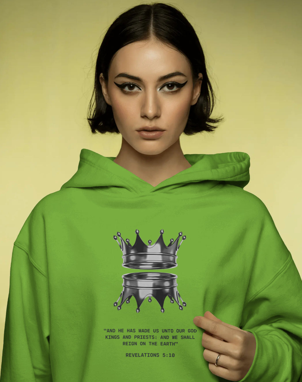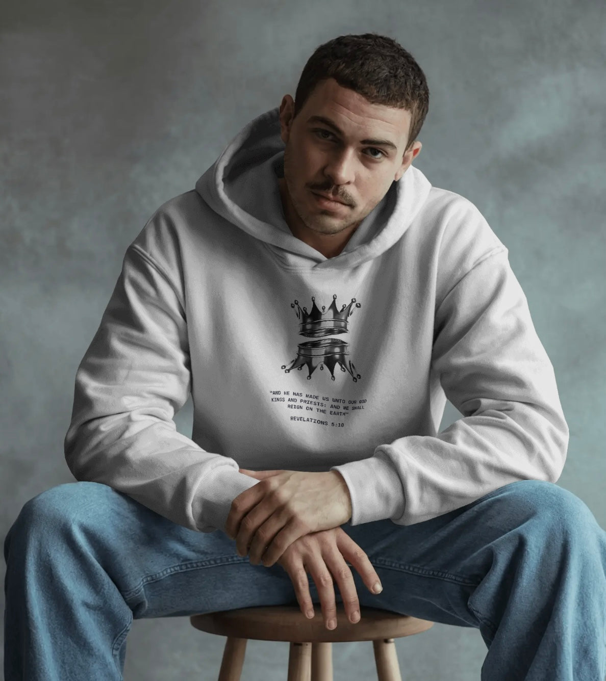 Inspired by Revelation 5:10, these hoodies are a declaration of identity and authority in Christ. Featuring a striking crown design, it represents royalty, purpose, and the divine calling placed on every believer — kings and priests unto our God.