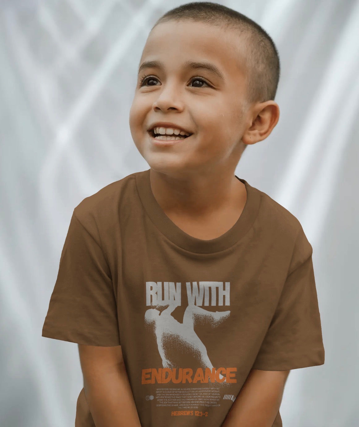 The Run With Endurance Tee is inspired by Hebrews 12:1–2, reminding children that life is a journey of faith — and God is with them every step of the way.