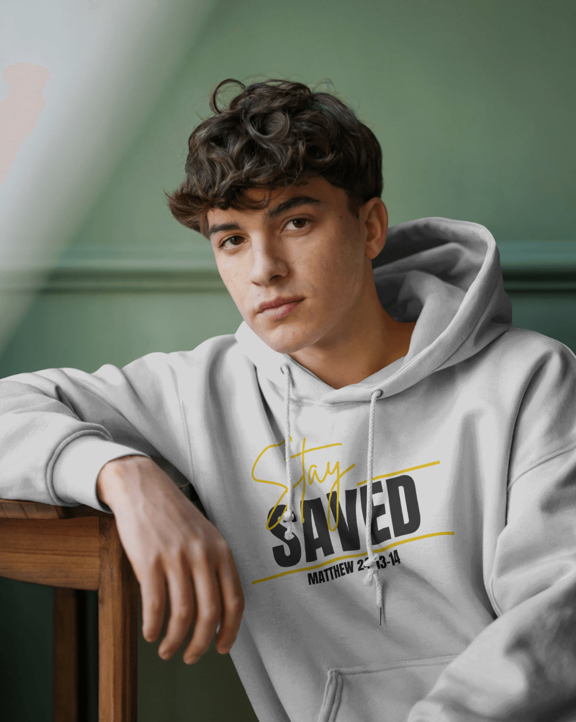 Bold, simple, and full of meaning, the Stay Saved Hoodie is a statement of perseverance and purpose. Inspired by Matthew 24:13–14, this design serves as a reminder to remain grounded, committed, and faithful through every season. The clean typography paired with striking contrast makes this hoodie easy to wear and impossible to ignore.