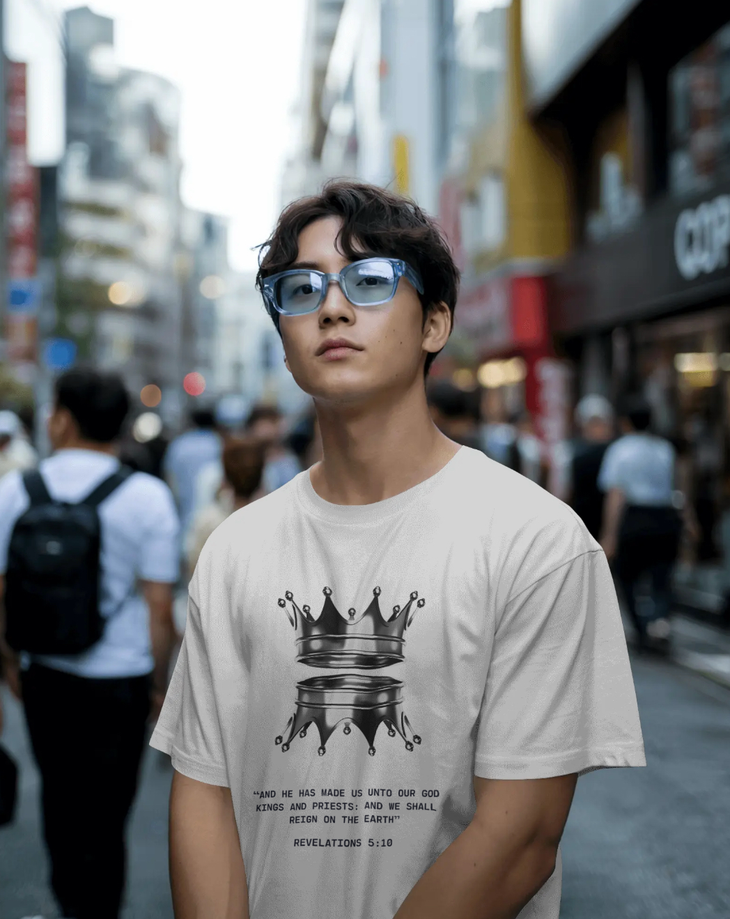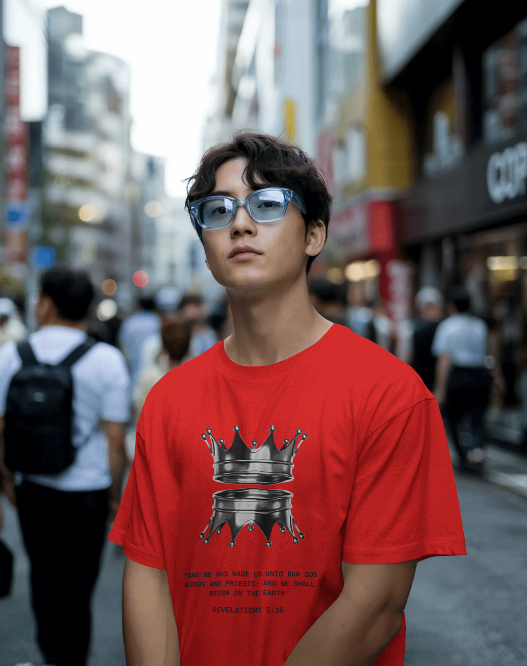 Inspired by Revelation 5:10, this t-shirt is a declaration of identity and authority in Christ. Featuring a striking crown design, it represents royalty, purpose, and the divine calling placed on every believer — kings and priests unto our God.